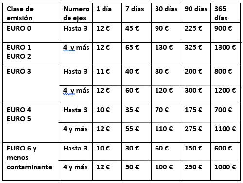 El peaje no dependerá de los kilómetros recorridos, si no que, el pago de éste otorgará el derecho a utilizar las carreteras durante un período de tiempo determinado y deberá pagarse antes de proceder a la realización del viaje.