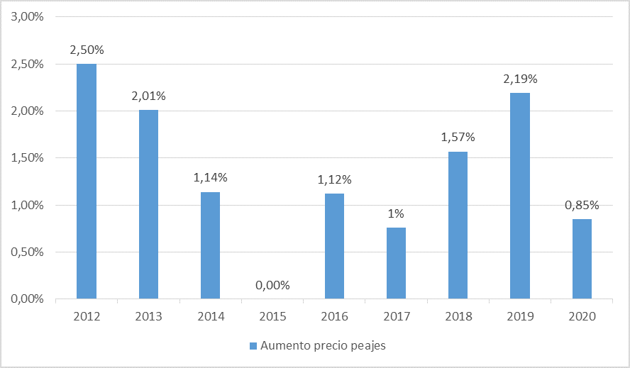 - Contrato entre concesionarias y el Estado que permite un incremento de los peajes hasta un 70% de la inflación, que se prevé entre el 0’90% y el 1’20%.