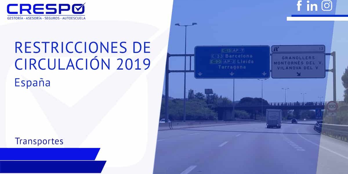 Desde este 21 de enero de 2019, con la publicación en el BOE de la Resolución de fecha 14 de enero de 2019 de la Dirección General de Tráfico (DGT), se establecen las medidas especiales de Tráfico para el presente año. La regulación establece cambios nimios en referencia a 2018, con nuevas restricciones y con ligeras reducciones horarias en prohibiciones.